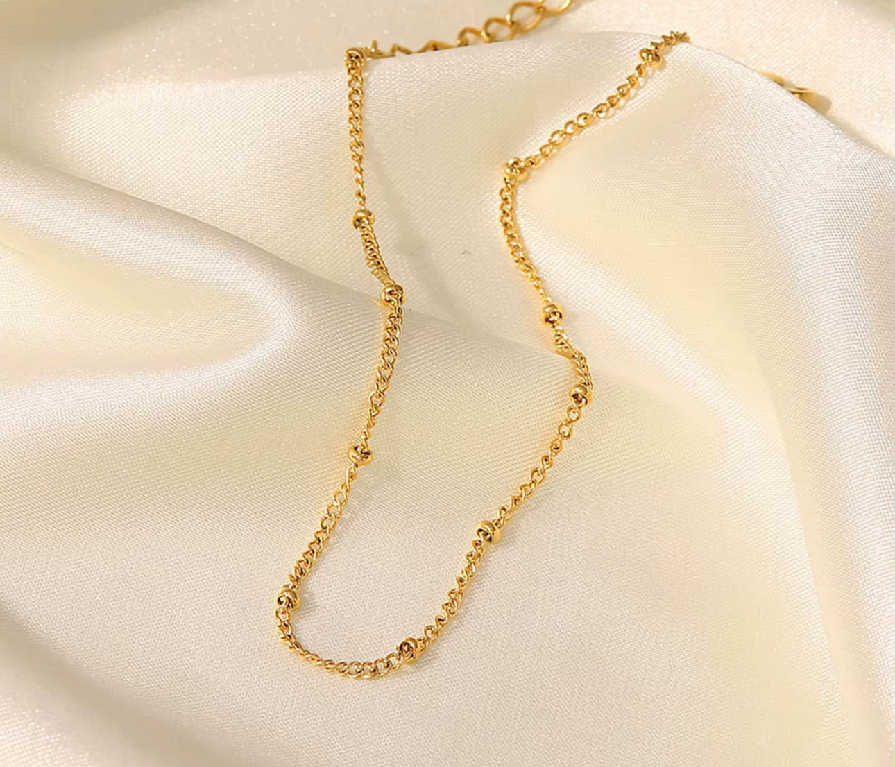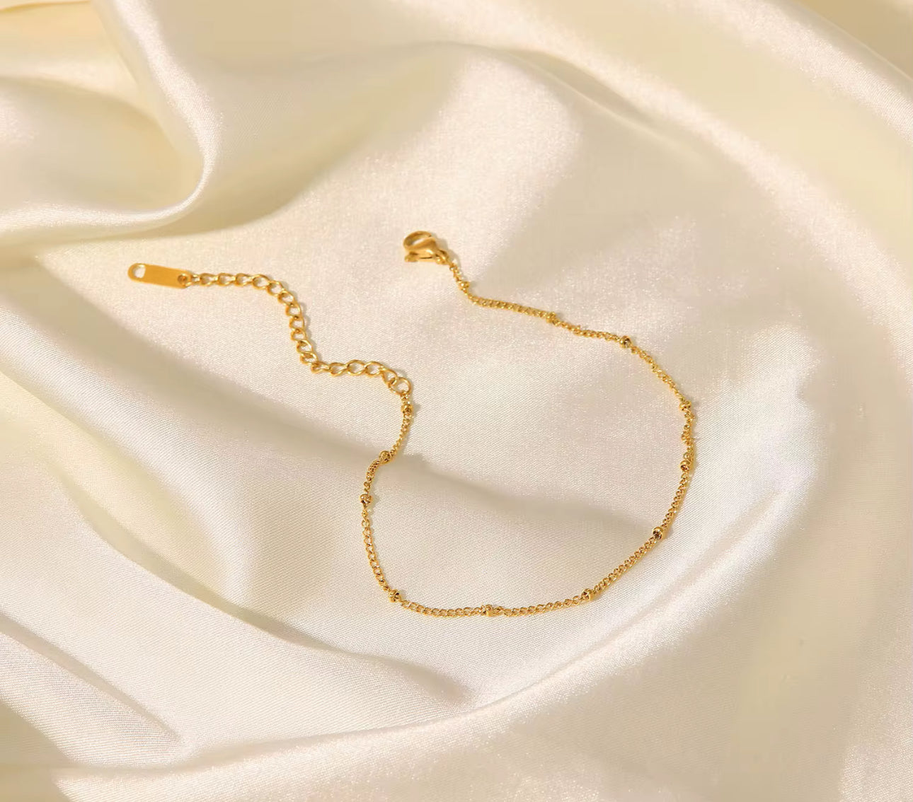 This dainty gold anklet features tiny beads for subtle texture and shine. It’s versatile enough to wear daily and stacks effortlessly with your other favorites.